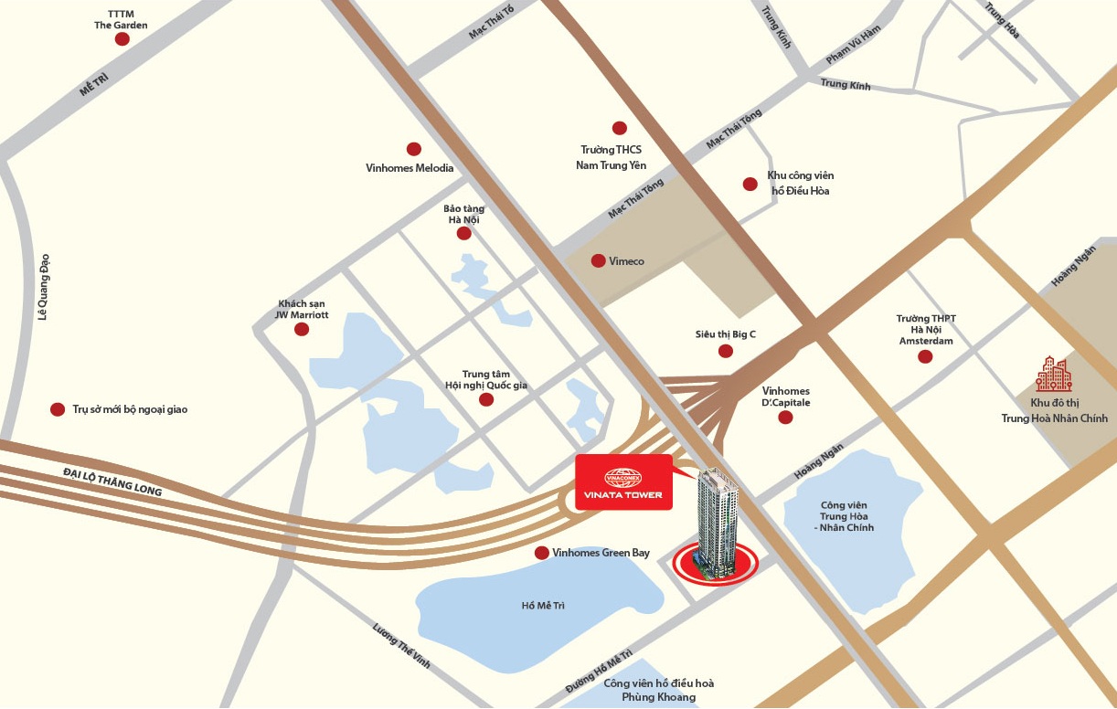 – Hồ điều hòa Trung Hòa – Nhân Chính: Rộng 8ha - Theo đánh giá của các chuyên gia bất động sản dự ánVinata Tower có lợi thế rất lớn về vị trí, điều này ảnh hưởng rất lớn tới giá trị của các căn hộ tại thời điểm hiện tại và trong tương lai.